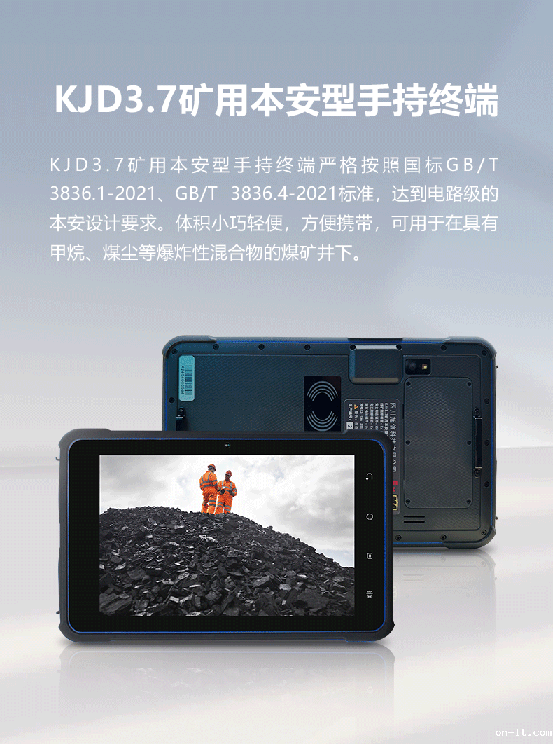 KJD3.7矿用本安型手持终端 ,体积小巧轻便,方便携带,可用于在具有甲烷、煤尘等爆炸性混合物的煤矿井下。